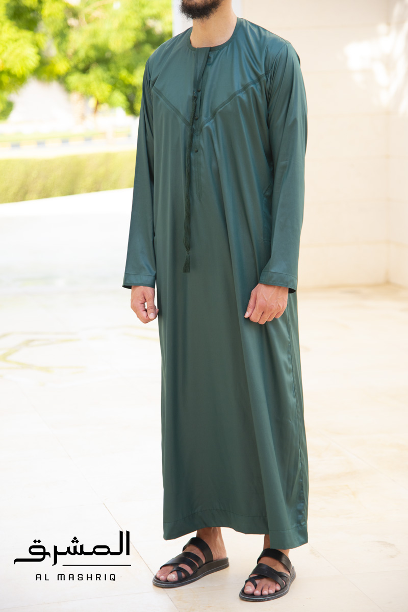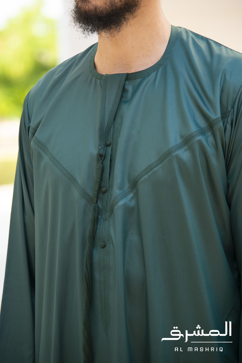 Qamis confectionné aux émirats arabes unis avec un tissu vietnamien précious satiné