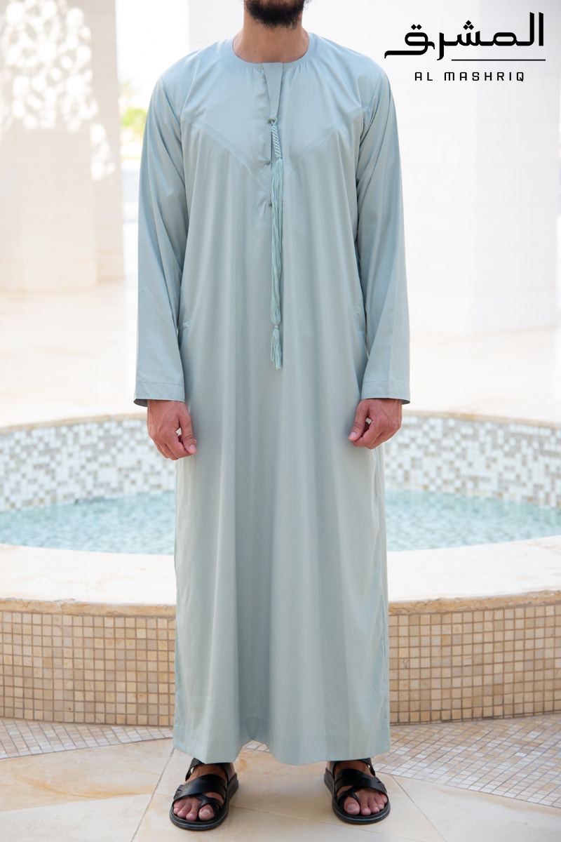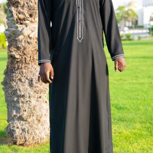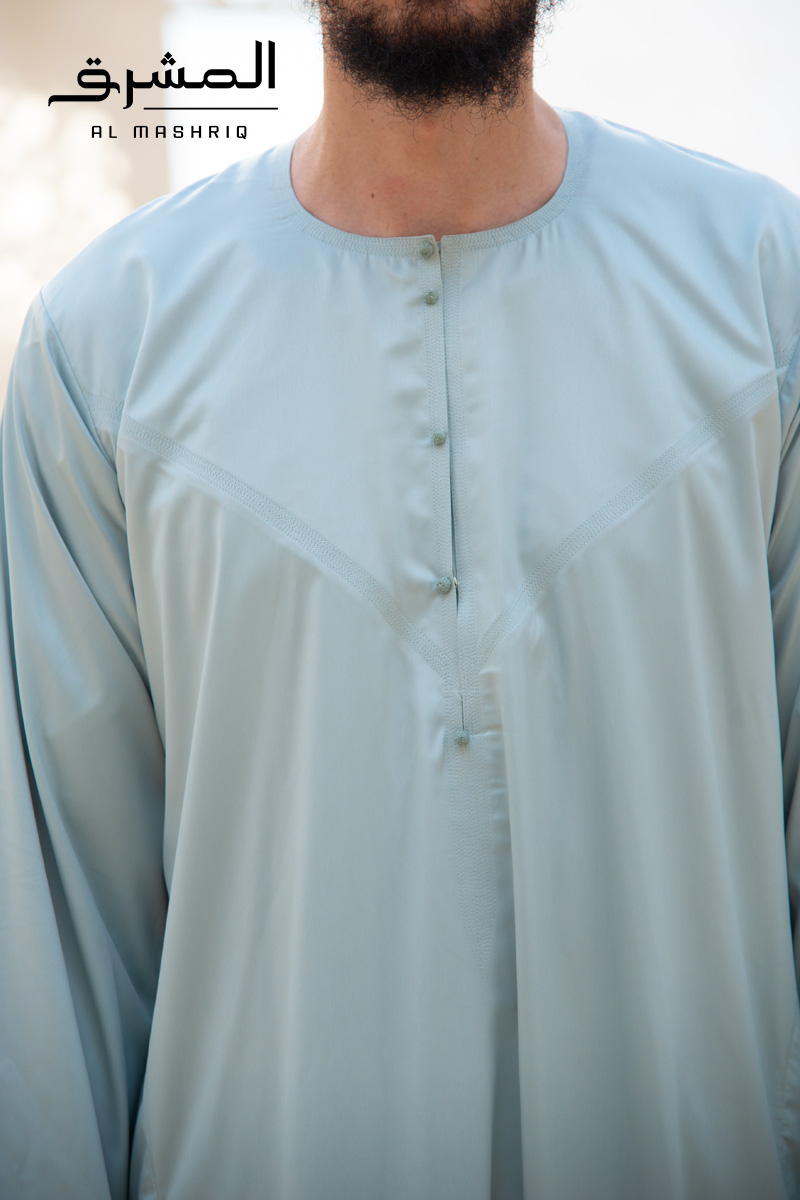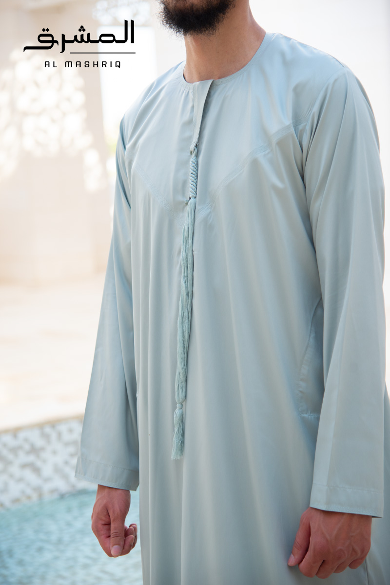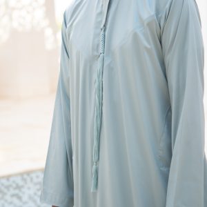 Qamis confectionné aux émirats arabes unis avec un tissu vietnamien précious satiné