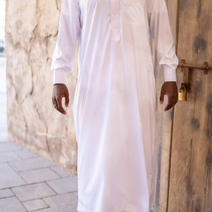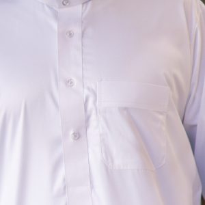 Qamis confectionné aux émirats arabes unis avec un tissu vietnamien precious satiné avec boutons aux manches